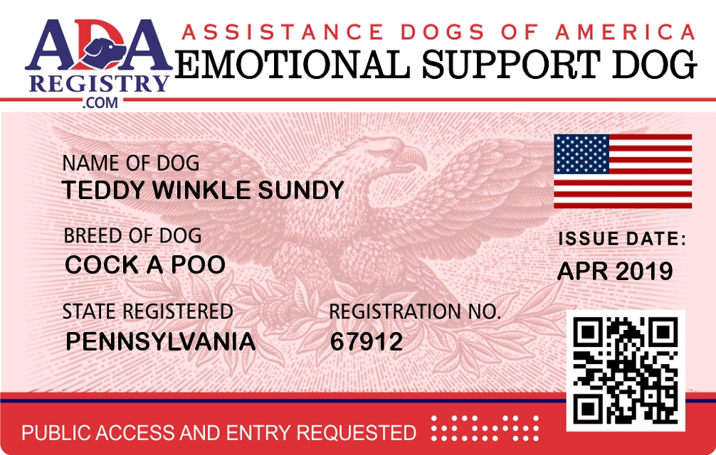 Emotional Support Dog Registration for Teddy Winkle Sundy