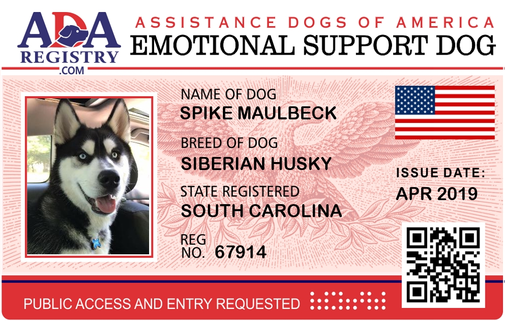 Emotional Support Dog Registration for Spike Maulbeck