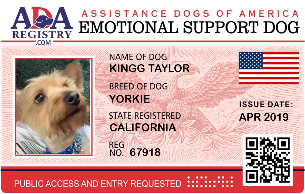 Emotional Support Dog Registration for Kingg Taylor