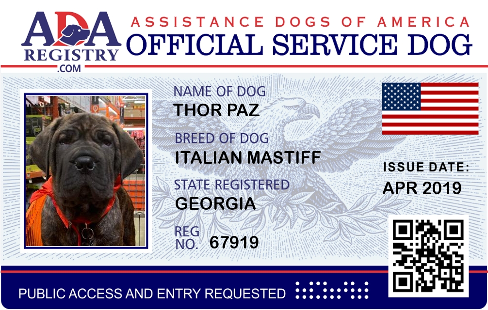 Service Dog Registration for Thor Paz