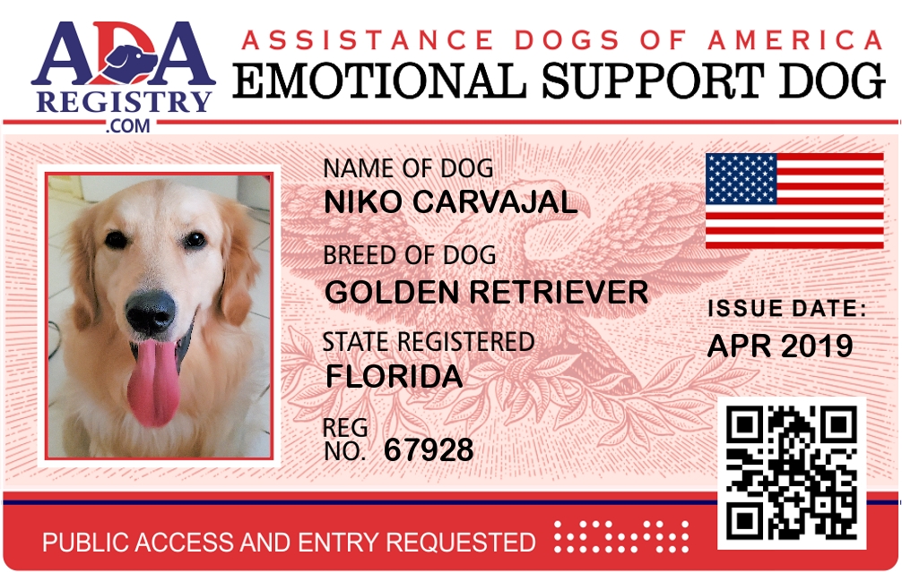 Emotional Support Dog Registration for Niko Carvajal