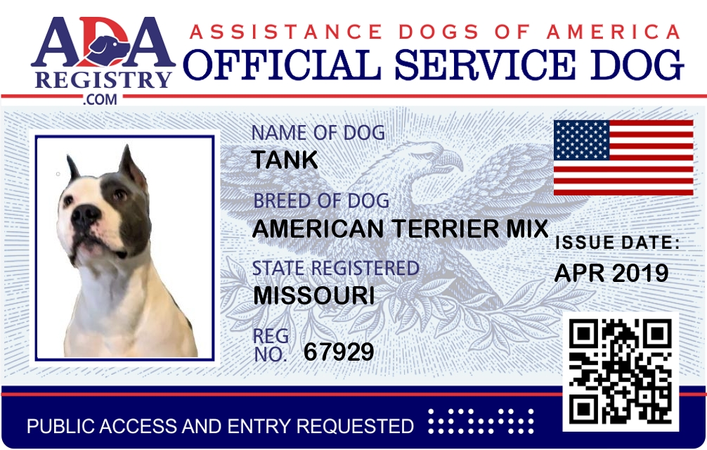 Service Dog Registration for Tank