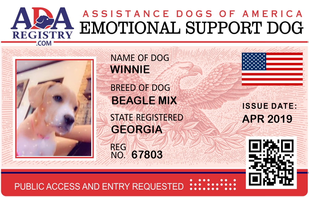 Emotional Support Dog Registration for Winnie