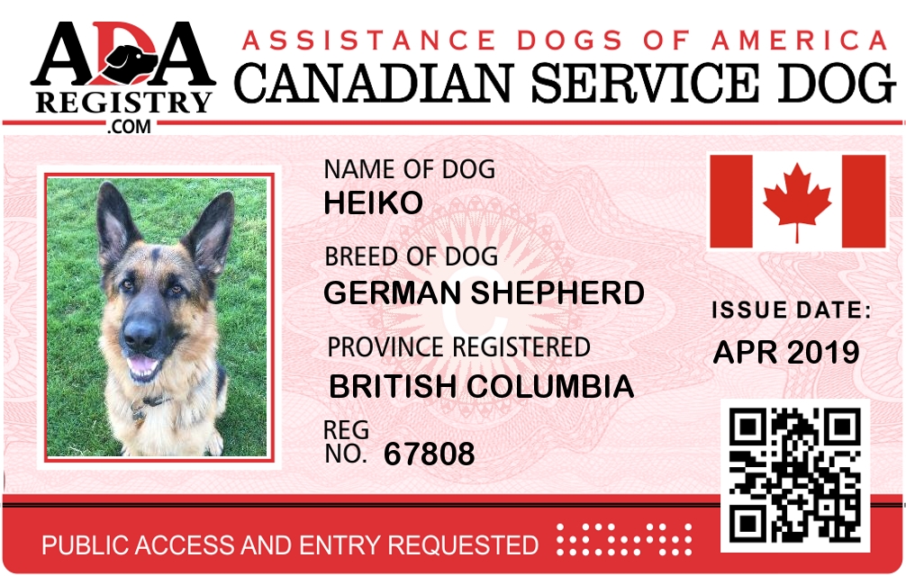 Service Dog Registration for Heiko