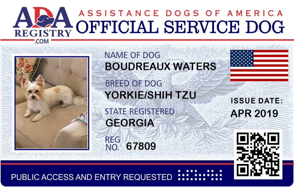 Service Dog Registration for Boudreaux Waters