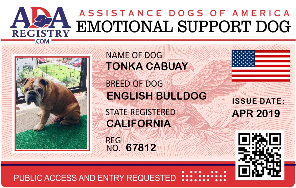 Emotional Support Dog Registration for Tonka Cabuay
