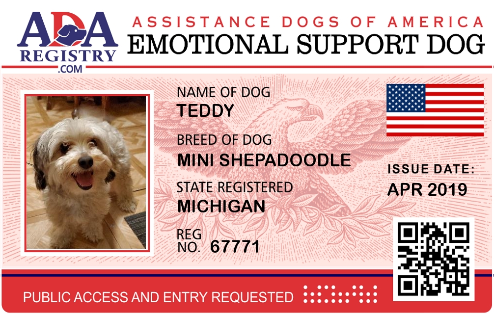 Emotional Support Dog Registration for Teddy