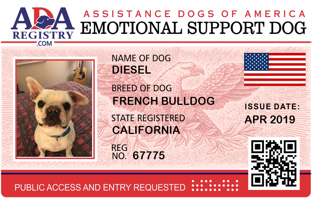 Emotional Support Dog Registration for Diesel