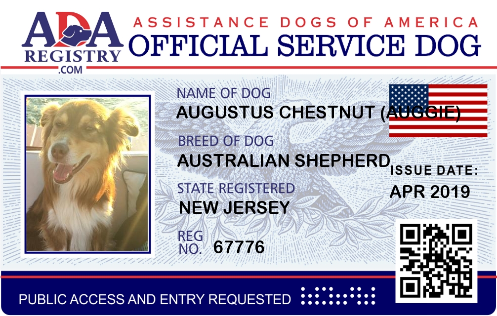 Service Dog Registration for Augustus Chestnut (Auggie)