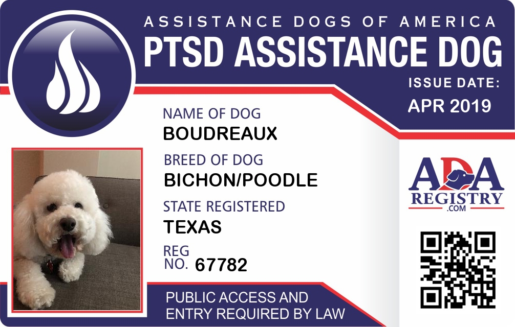 PTSD Assistance Dog Registration for Boudreaux