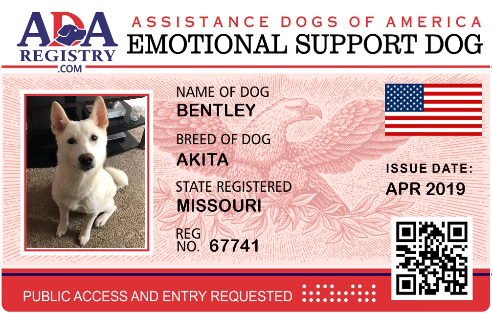 Emotional Support Dog Registration for Bentley