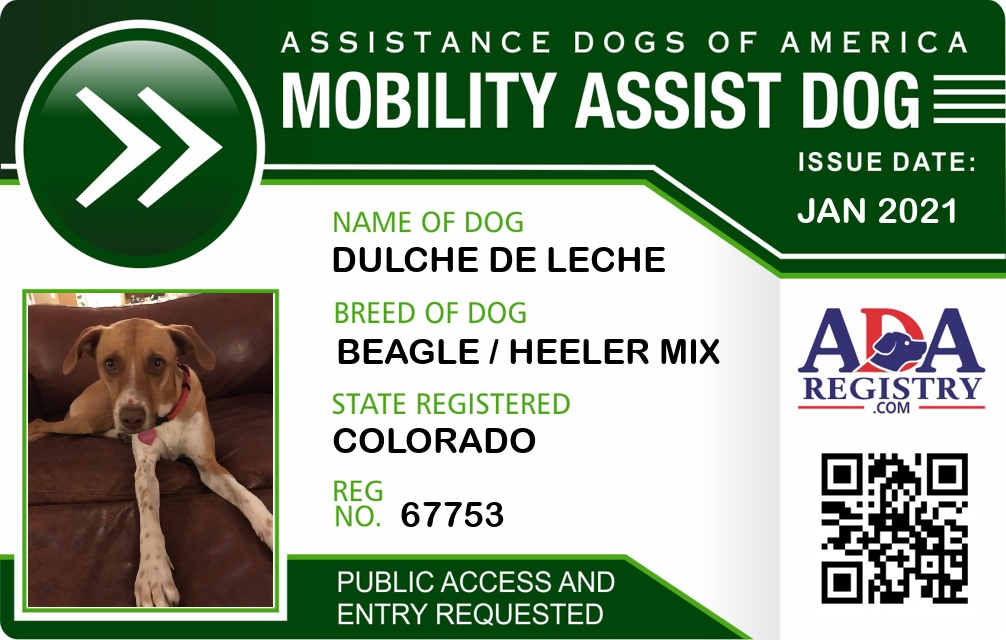 Brace / Mobility Assistance Dog Registration for Dulche De Leche