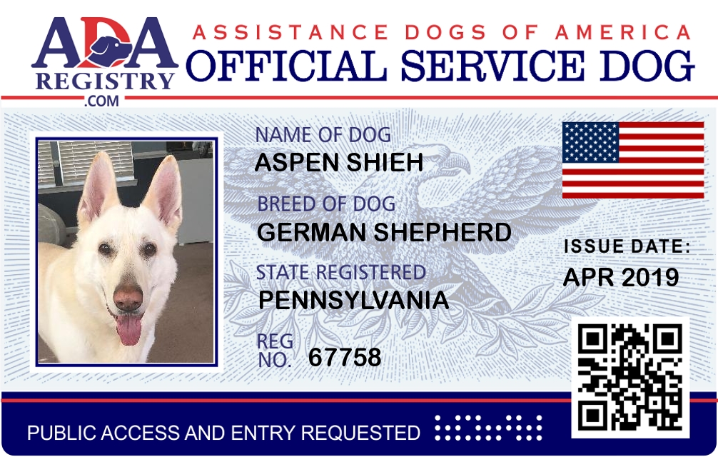 Service Dog Registration for ASPEN SHIEH
