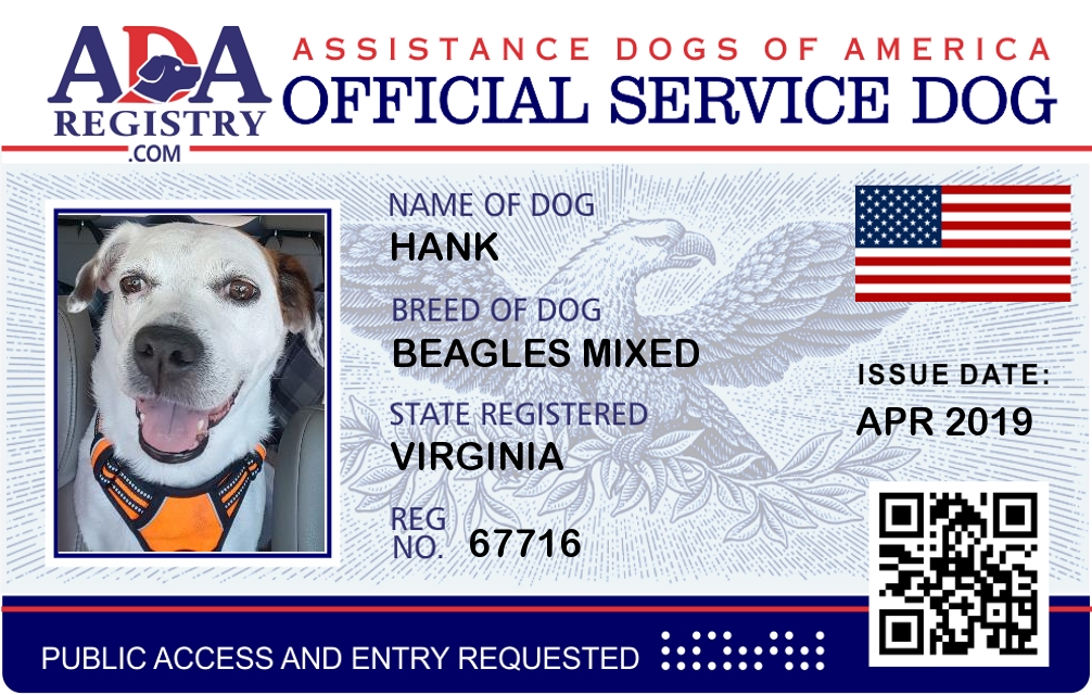 Service Dog Registration for HANK