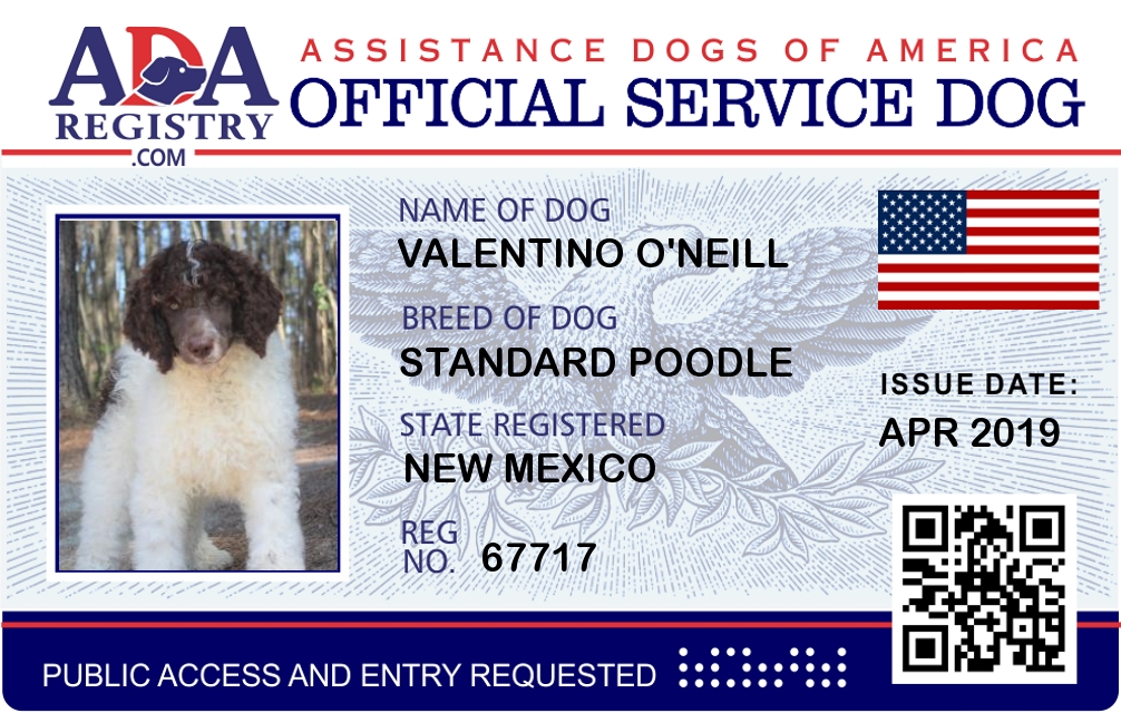 Service Dog Registration for VALENTINO O'NEILL