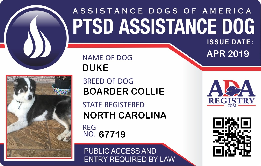 PTSD Assistance Dog Registration for Duke