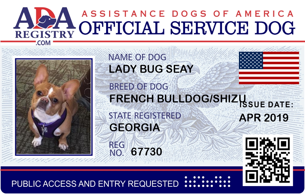 Service Dog Registration for Lady Bug Seay