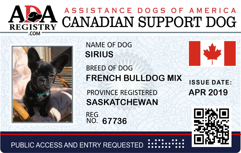 Emotional Support Dog Registration for Sirius