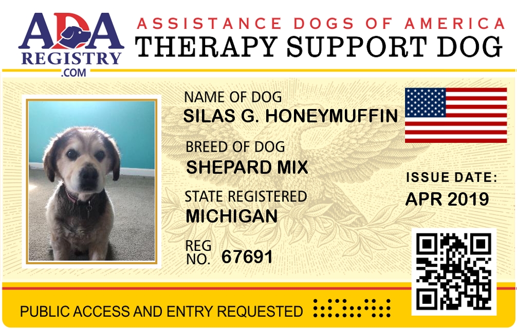Therapy Dog Registration for Silas G. Honeymuffin