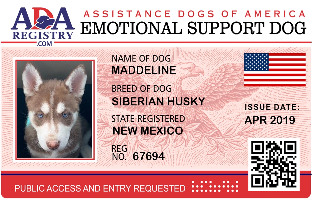Emotional Support Dog Registration for Maddeline