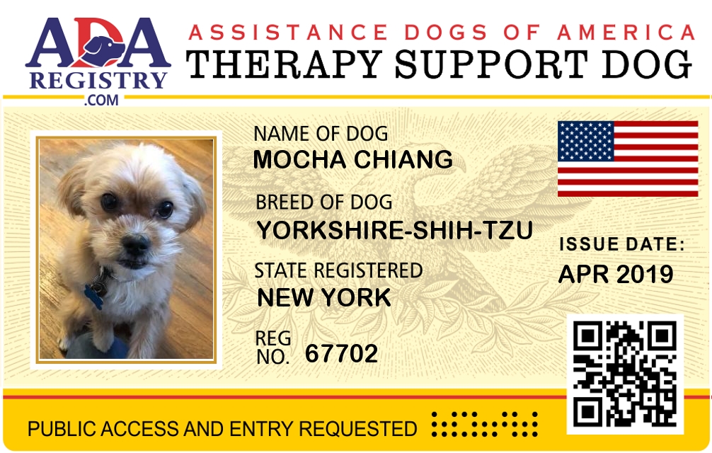 Therapy Dog Registration for Mocha Chiang