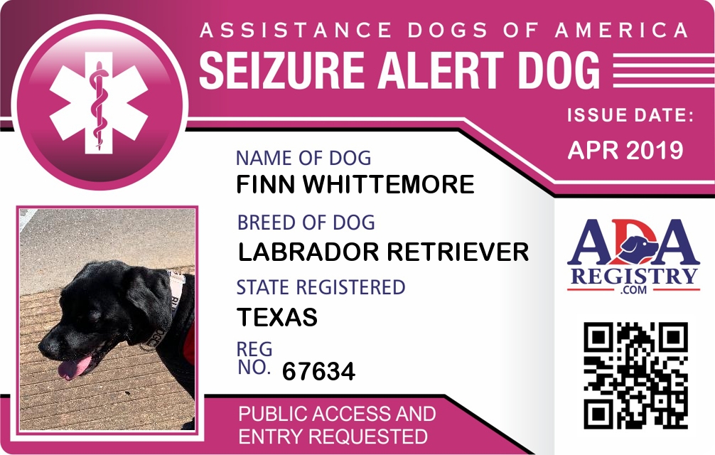 Seizure Assistance Dog Registration for Finn Whittemore