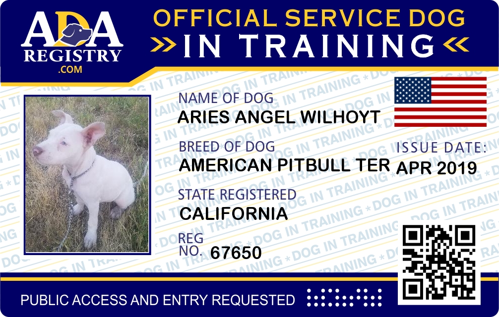 Service Dog In Training Registration for Aries Angel Wilhoyt