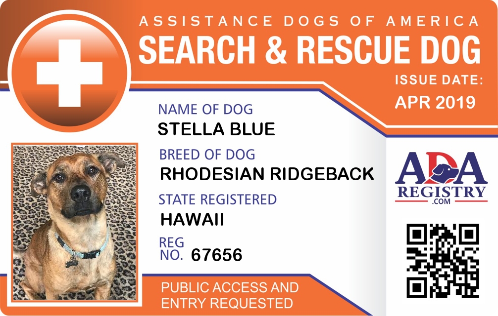 Search And Rescue Dog Registration for Stella Blue