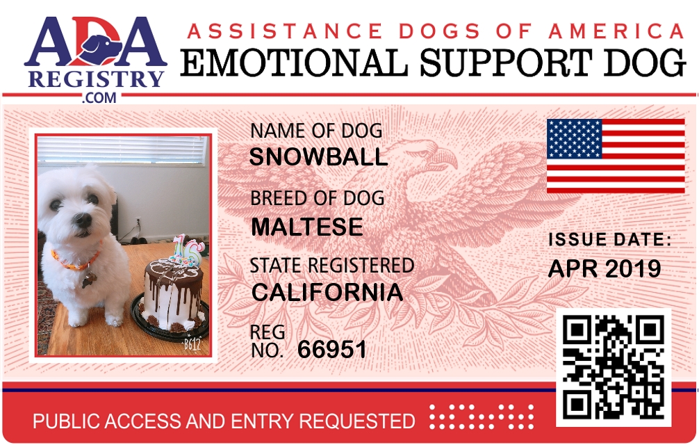 Emotional Support Dog Registration for Snowball