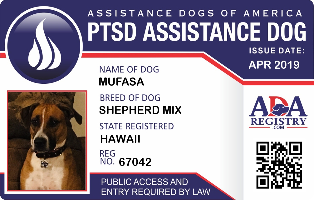 PTSD Assistance Dog Registration for Mufasa