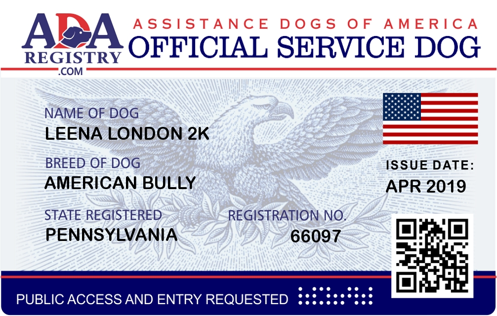 Service Dog Registration for Leena London 2k