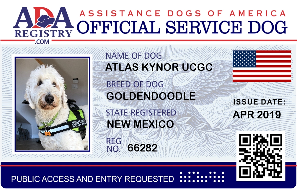 Service Dog Registration for Atlas Kynor UCGC