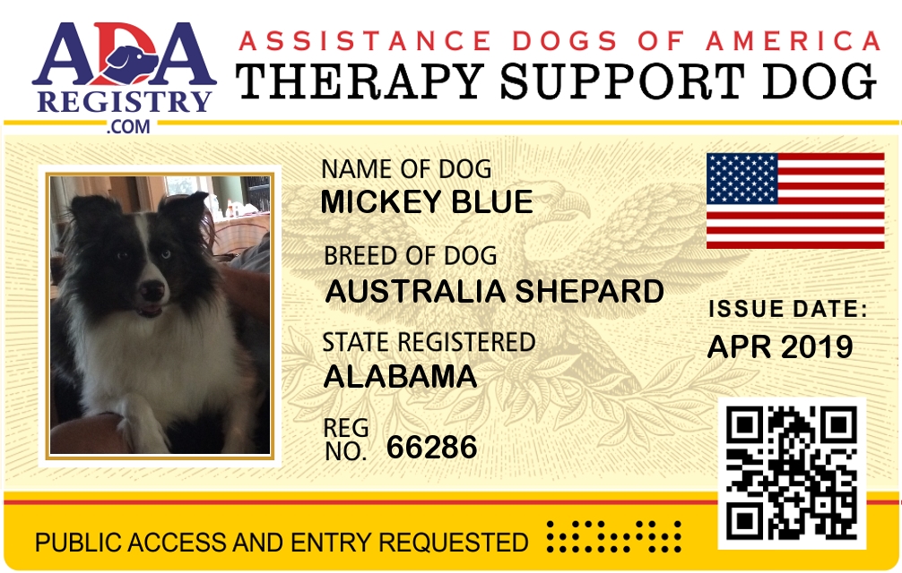 Emotional Support Dog Registration for Mickey Blue