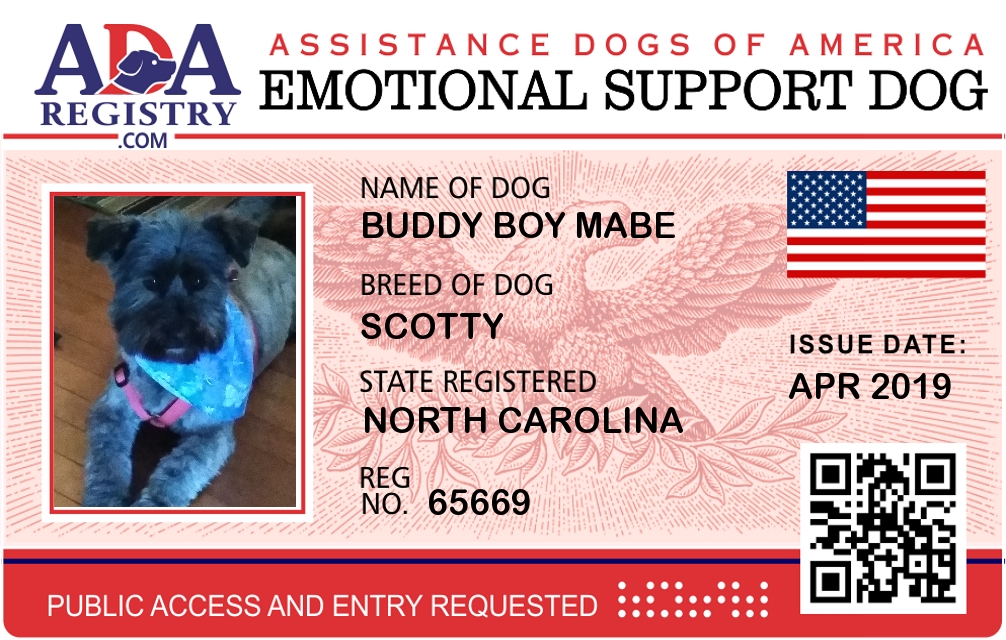 Emotional Support Dog Registration for Buddy Boy Mabe
