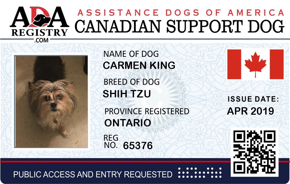 Emotional Support Dog Registration for Carmen king