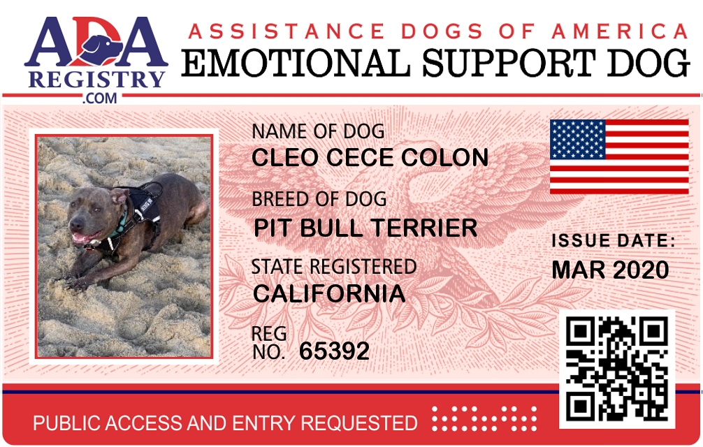 Emotional Support Dog Registration for Cleo Cece Colon