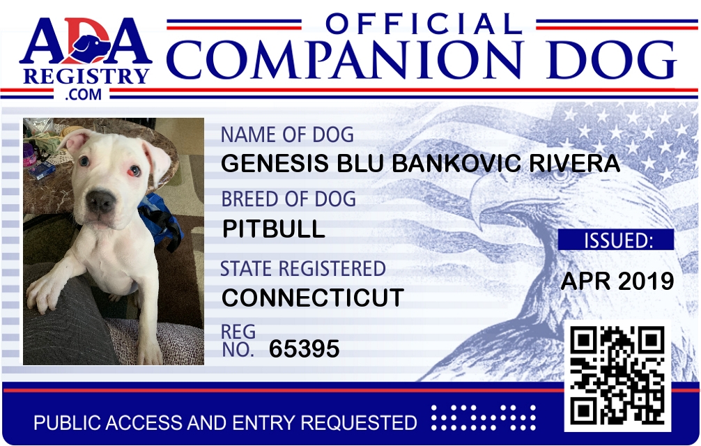 Companion Dog Registration for Genesis Blu Bankovic Rivera