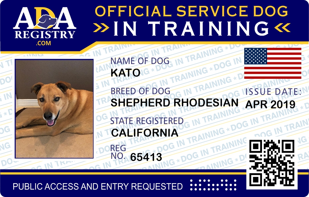 Service Dog In Training Registration for Kato