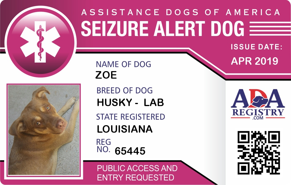 Seizure Assistance Dog Registration for Zoe