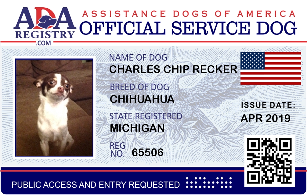 Service Dog Registration for Charles Chip Recker
