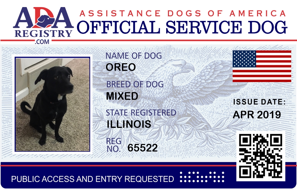 Service Dog Registration for Oreo