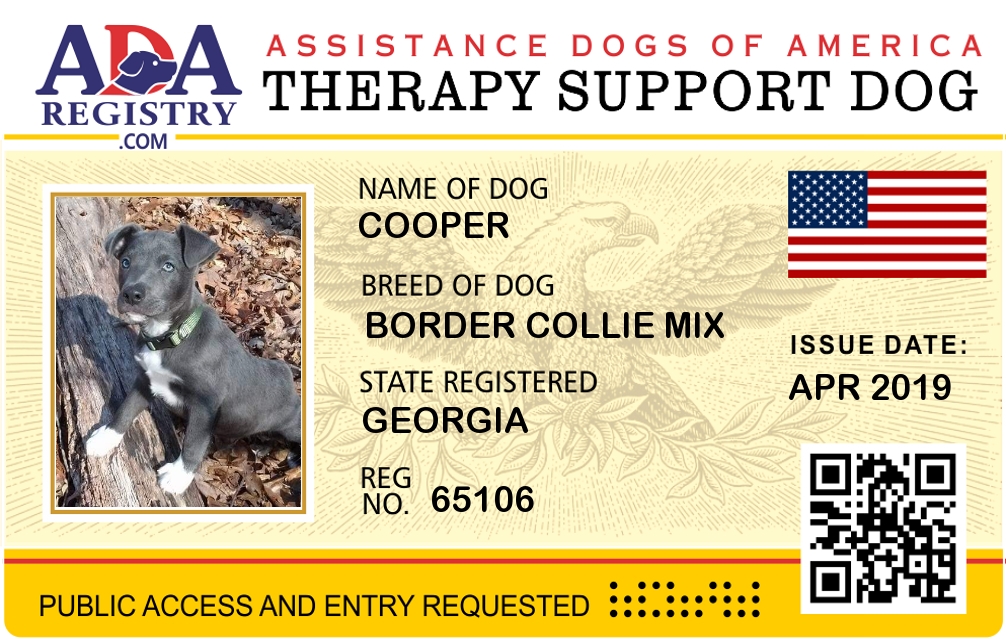 Therapy Dog Registration for Cooper