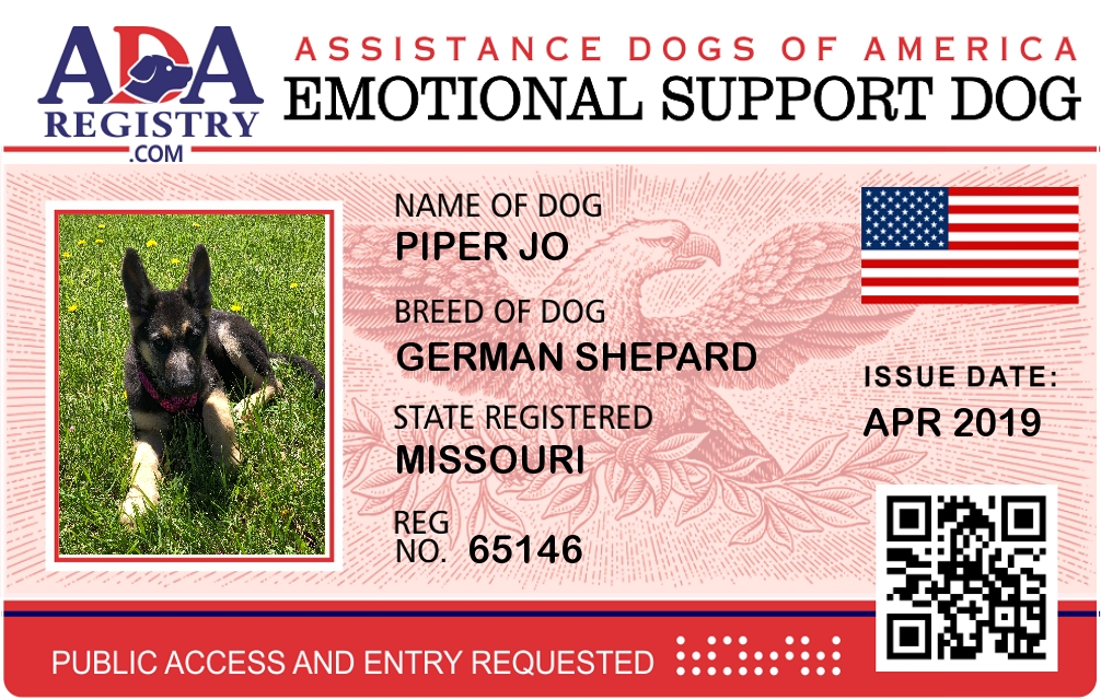 Emotional Support Dog Registration for Piper Jo