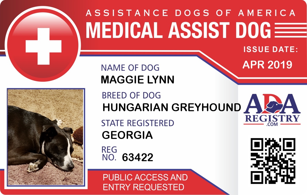 Medical Assistance Dog Registration for Maggie Lynn