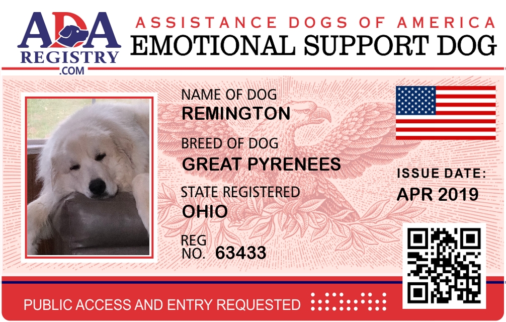 Emotional Support Dog Registration for Remington
