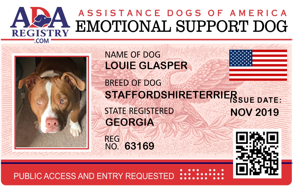 Emotional Support Dog Registration for Louie Glasper