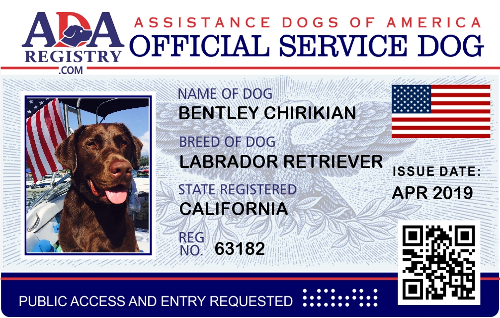 Service Dog Registration for Bentley Chirikian