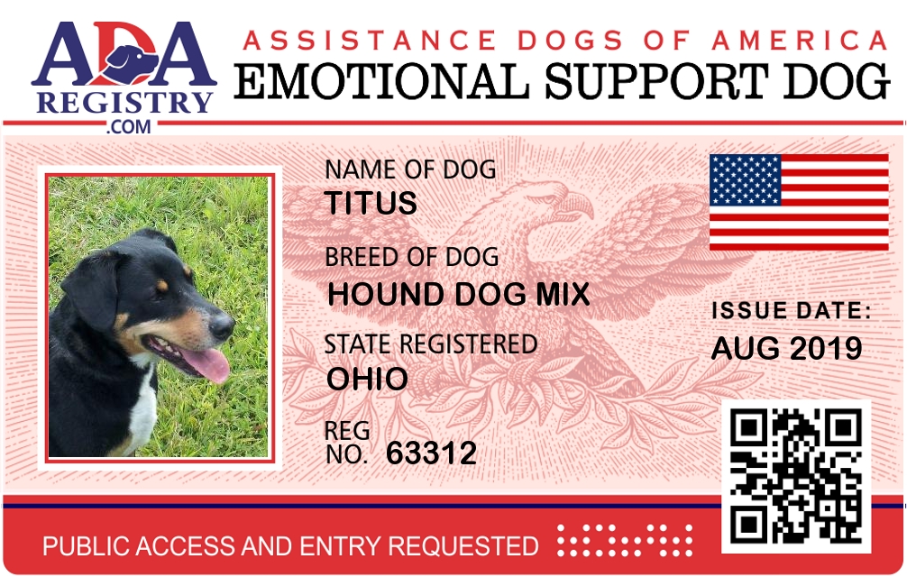 Emotional Support Dog Registration for Titus