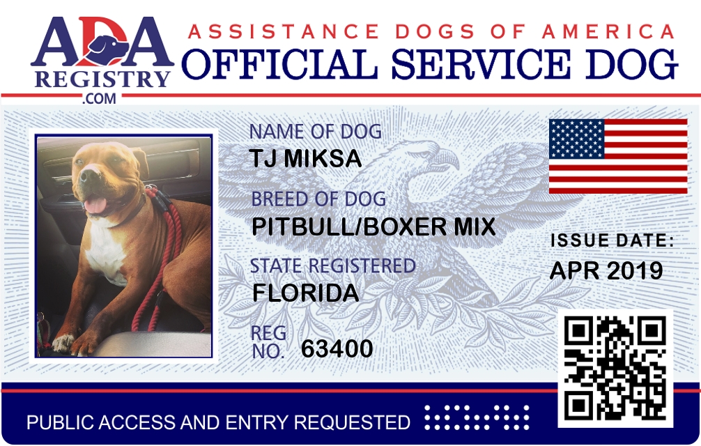 Service Dog Registration for TJ Miksa
