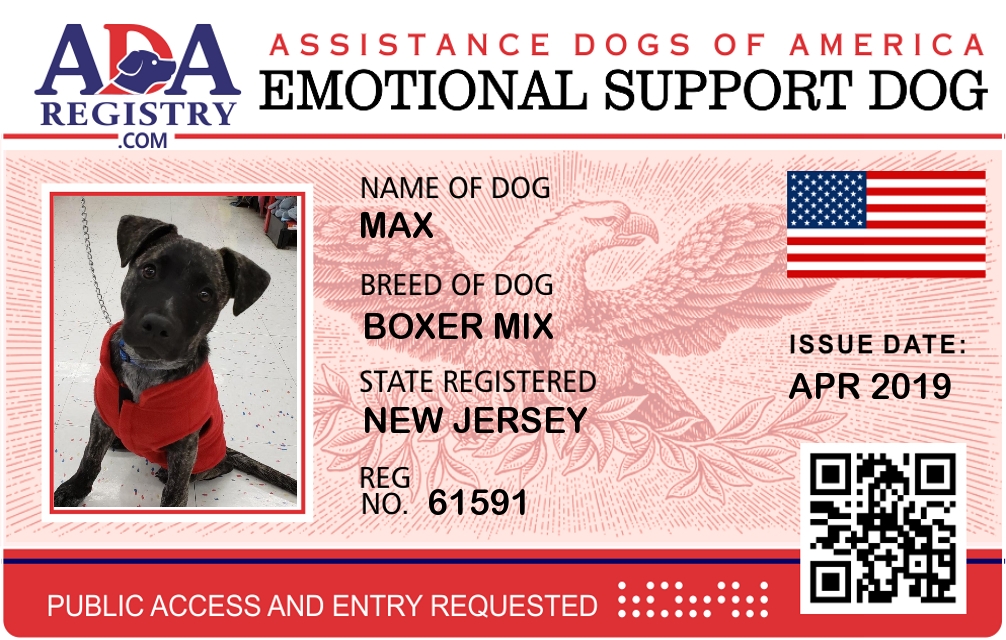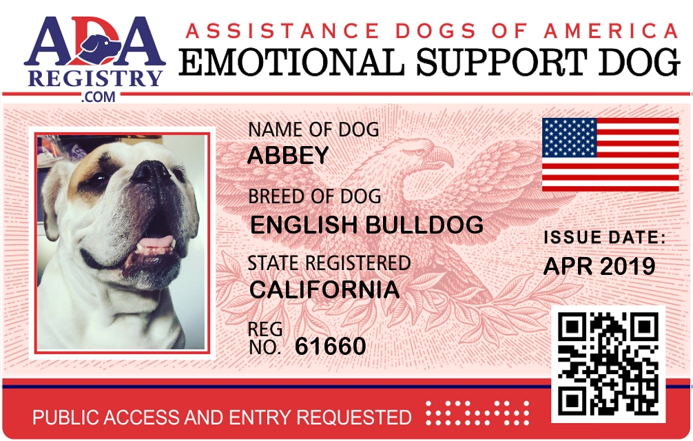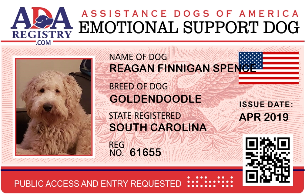 Emotional Support Dog Registration for Reagan Finnigan Spence